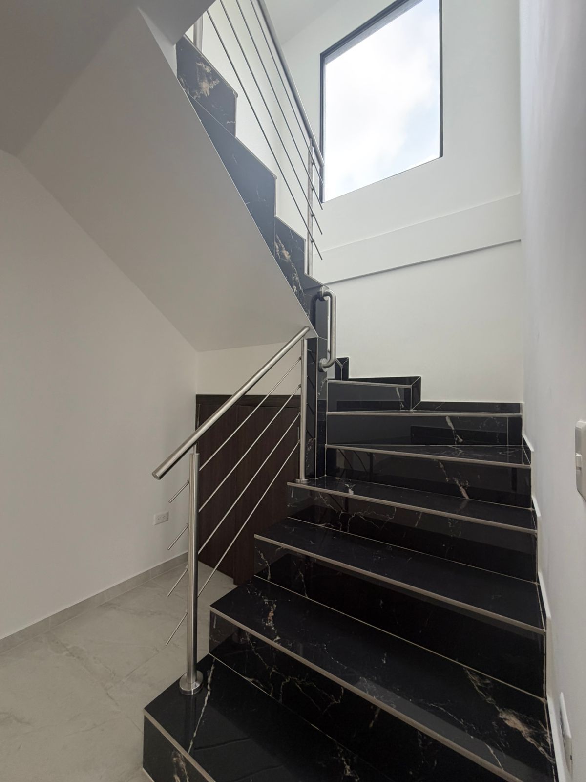- DISTRIBUCIÓN: Planta Baja Sala, comedor, cocina abierta, baño social, parqueo semicubierto, patio, lavandería. Planta alta Dormitorio principal con baño y vestidor. 2 dormitorios con baño cada uno.